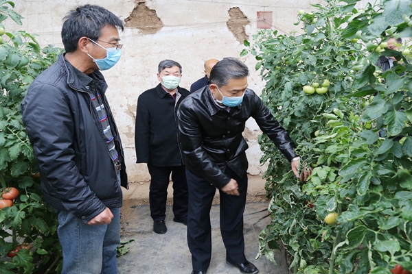 李兴旺在泾阳蔬菜试验示范站查看番茄新品种