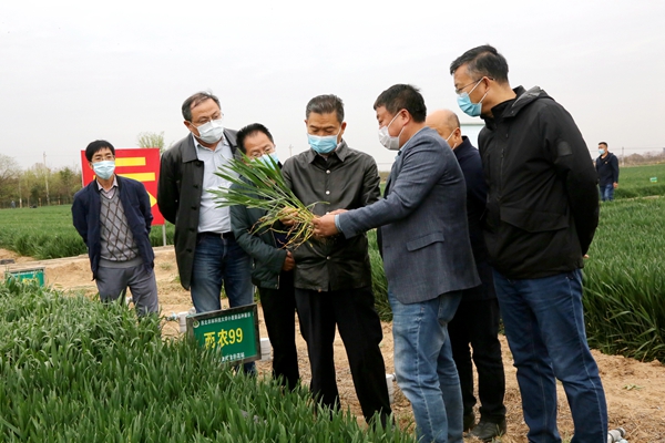 李兴旺在斗口试验示范站查看小麦新品种展示